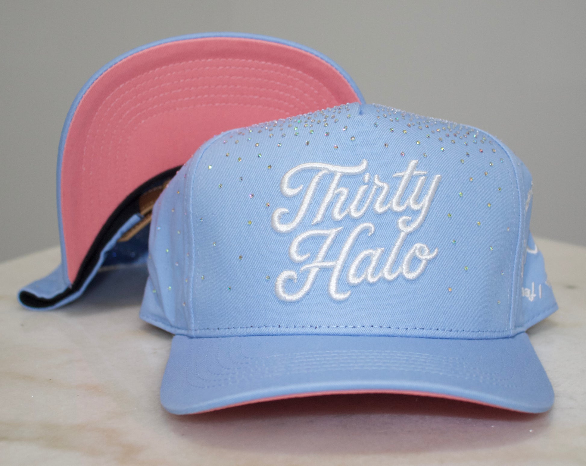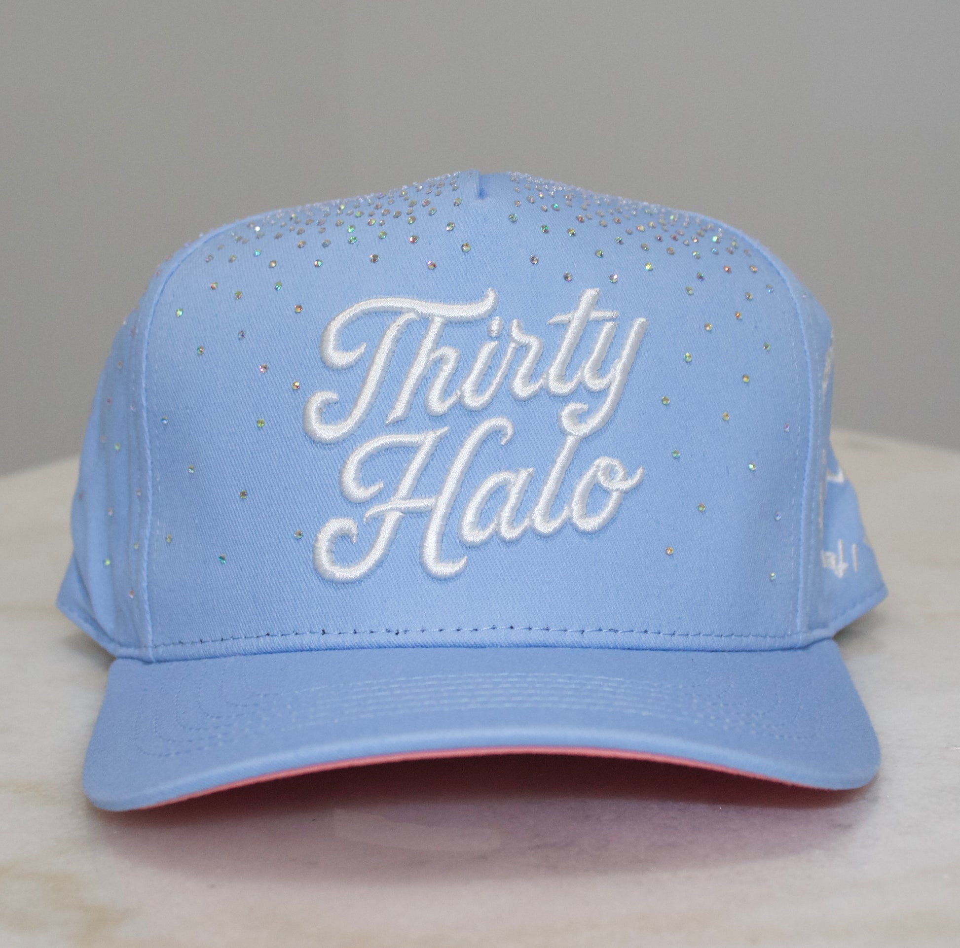 Step into your confidence with the Divine Ease Sky Blue Halo cap — a statement piece designed to make you stand out without saying a word. Crafted in sky blue with a pink brim and finished with radiant rhinestone detailing across the crown, this hat reflects elevation, grace, and undeniable presence. The signature Thirty Halo embroidery on the front and “30” halo side detailing complete the look with meaning and intention.